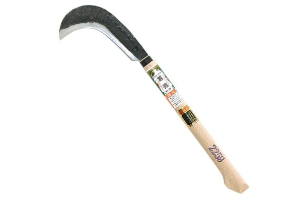 Pour faucher, couper des branches, des racines. Très légères en main et d’un tranchant redoutable, les faucilles japonaises rendent les travaux de jardinage beacoup plus faciles. Lame robuste en acier forgé main  Ã  3 plis, couche centrale en acier à haute teneur en carbone pour un meilleur tranchant L’entretien du tranchant se fera avec une pierre à grain fin, les pierres japonaises à l’eau donnant les meilleurs résutats sur les aciers japonais. Manche en bois de chêne blanc japonais Longueur de lame 170mm Epaisseur de la lame 3-4mm Longueur totale 500mm Poids 430g seulement